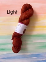 Colorway: "Burnt Sienna" is a wonderful red-brown shade, great for those neutral colored projects you have planned. This color is member of my "Artist's Palette" collection - yarns inspired by some of my favorite oil paint colors. This yarn is dyed by hand using acid dyes. Bright, vibrant colors that are lightfast and washfast.