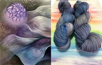 Colorway :"Forbidden Morning Fog" is based off the oil painting of the same name painted in 2018. This is a smaller painting from my "Glowing Tidepools Series" The fluid nature of these paintings lends themselves to a more tonal/random dye technique than used on my variegated yarns. This yarn is dyed by hand using Jacquard Acid Dyes. Bright, vibrant colors that are lightfast and washfast.