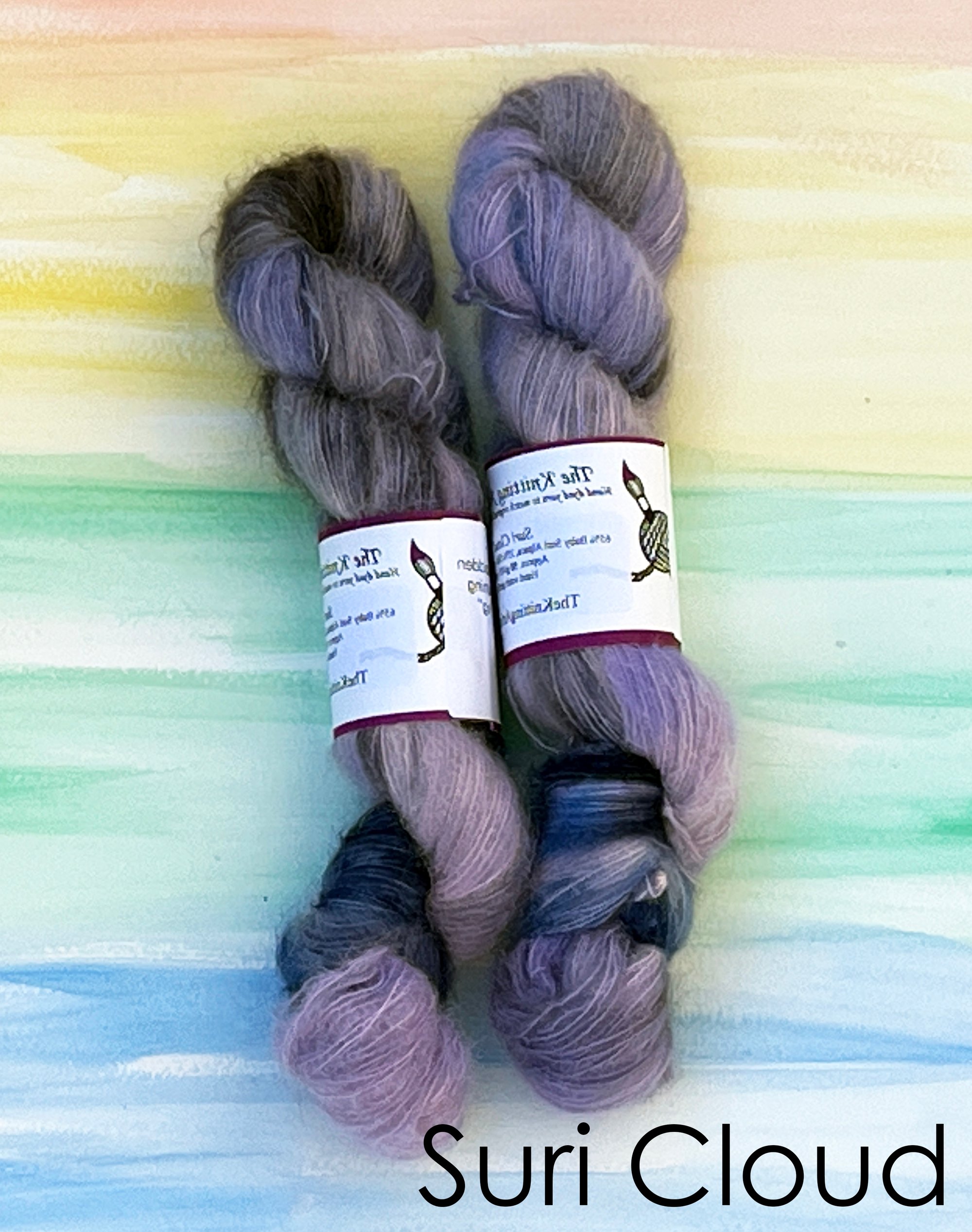 Each skein comes with a printed greeting card containing the original painting on the front and painting information on the back.