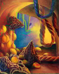Each skein comes with a printed greeting card containing the original painting on the front and painting information on the back.