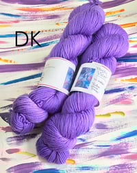 Colorway:"Mystic Violet" is dyed to match "Fallen Moon Drops", both based off the oil painting of the same name painted in 2014. Combining blues, violets, pinks and a pop of gold, this is a fun color palette to play with. This specific purple has a hint of neon-violet and is a vibrant, playful color. This yarn is dyed by hand using Jacquard Acid Dyes. Bright, vibrant colors that are lightfast and washfast.