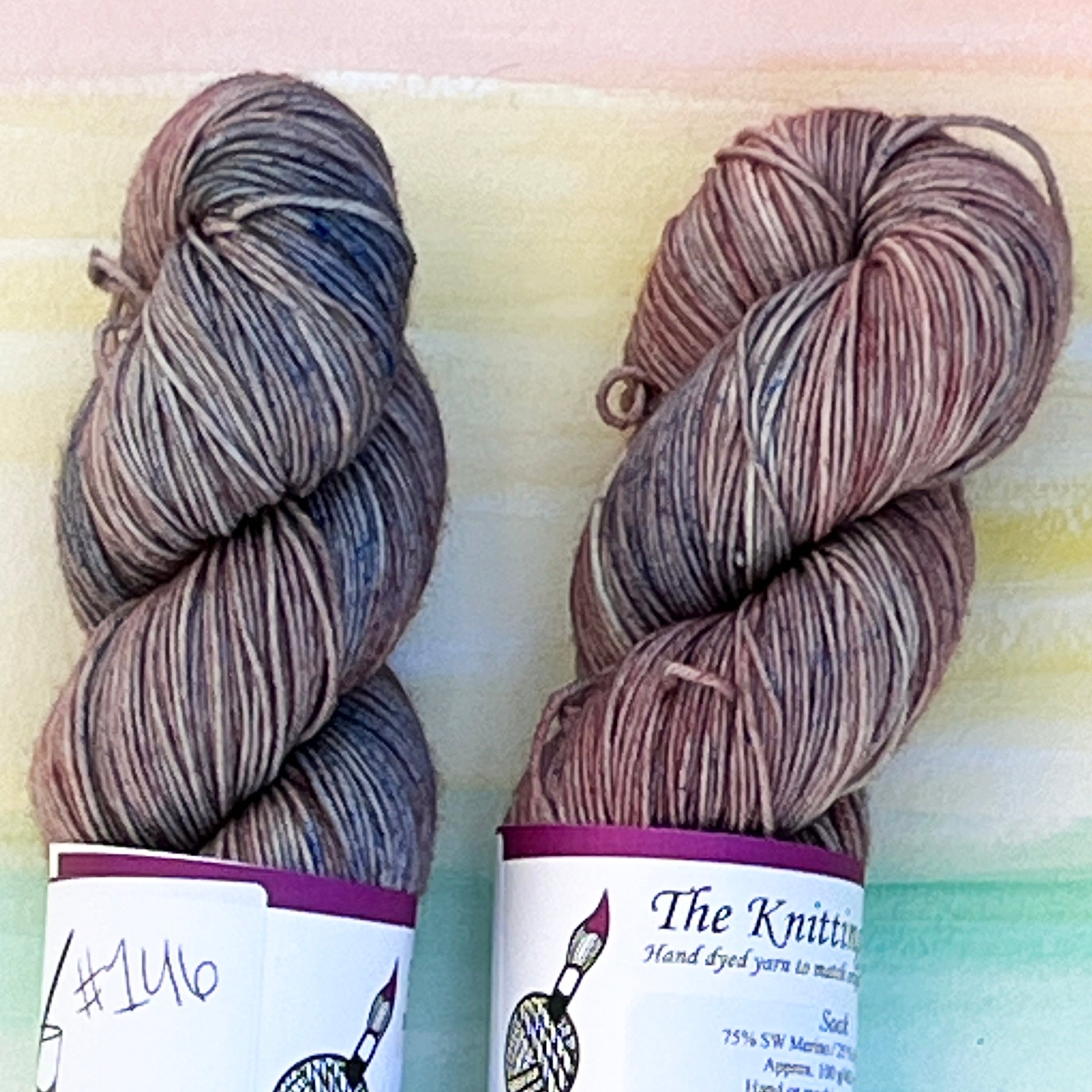 These are dyed on my "Sock" Base - 75% SW Merino, 25% Nylon, 4ply, 463yds/100g